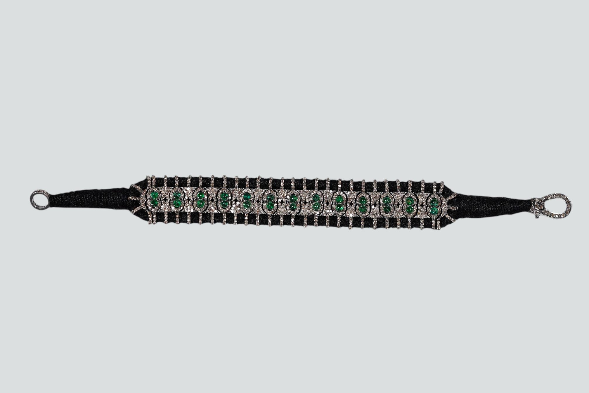 Total Weight: 16.96 Silver Weight: 15.96 Emerald Weight: 1.51 Diamond Weight: 3.49