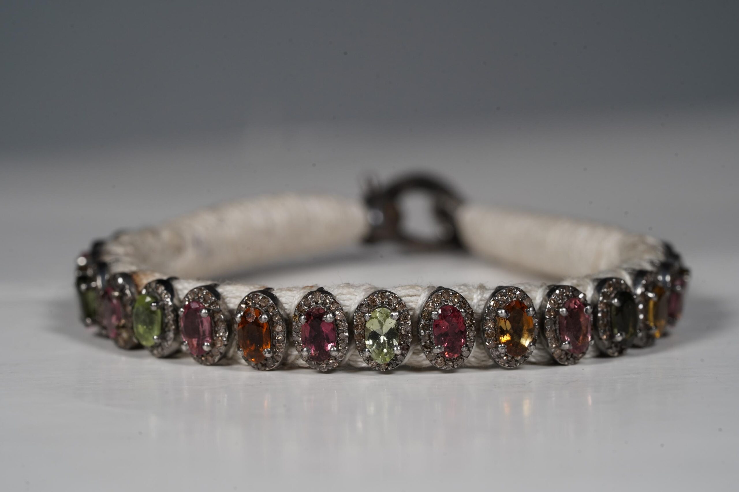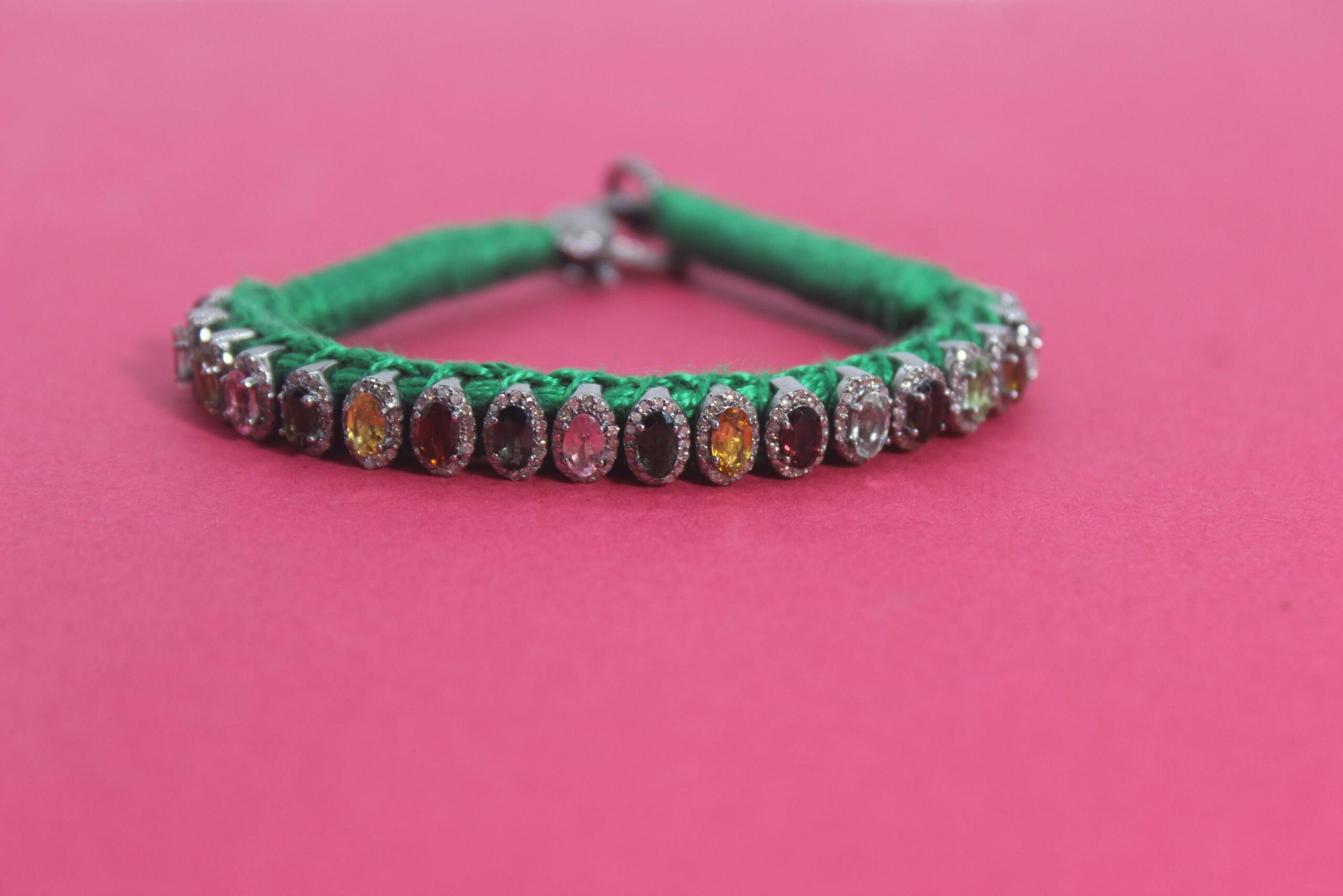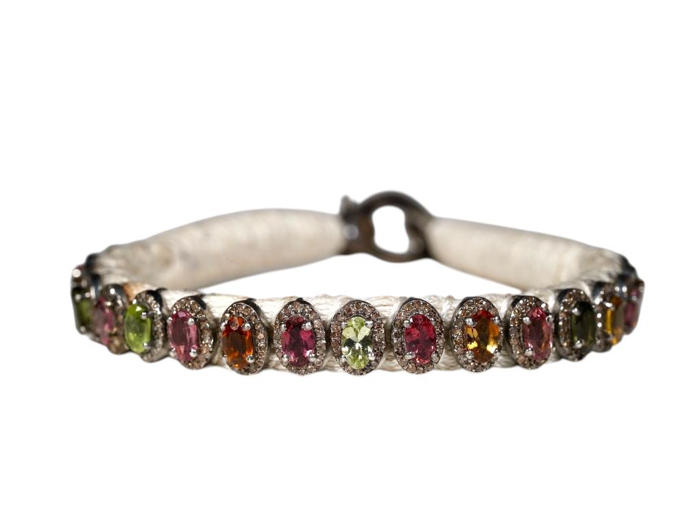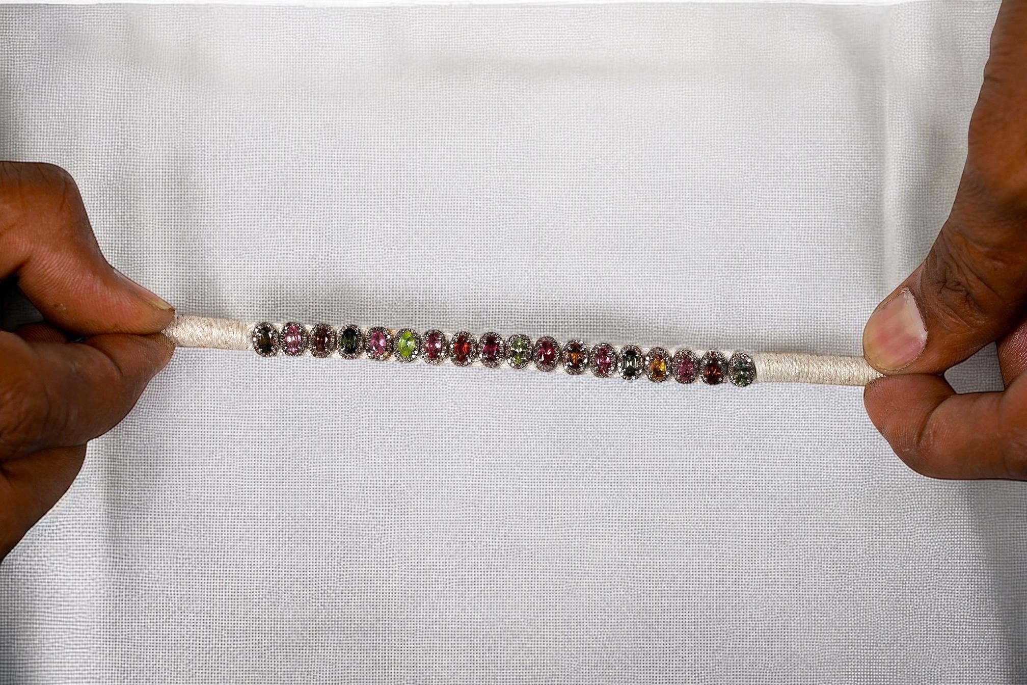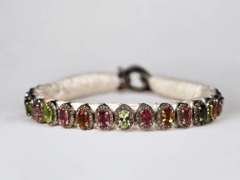 Handmade Natural Diamond Macrame Bracelet, with Multi ColorTourmalines, made in 925 Silver, Thread Bracelet, with Multiple Yarn Color Options